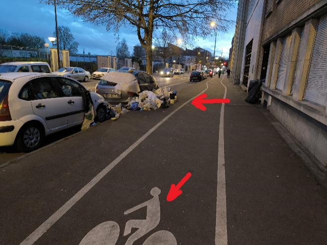 Ce que je sais, c’est qu’autour de son logement de fortune on n’hésite pas à dépenser de l’argent en veux-tu en voilà pour créer avec de la peinture peu écologiste des parcours vélos précaires, des limitations de vitesse que la plupart ignore parce qu’excessive …